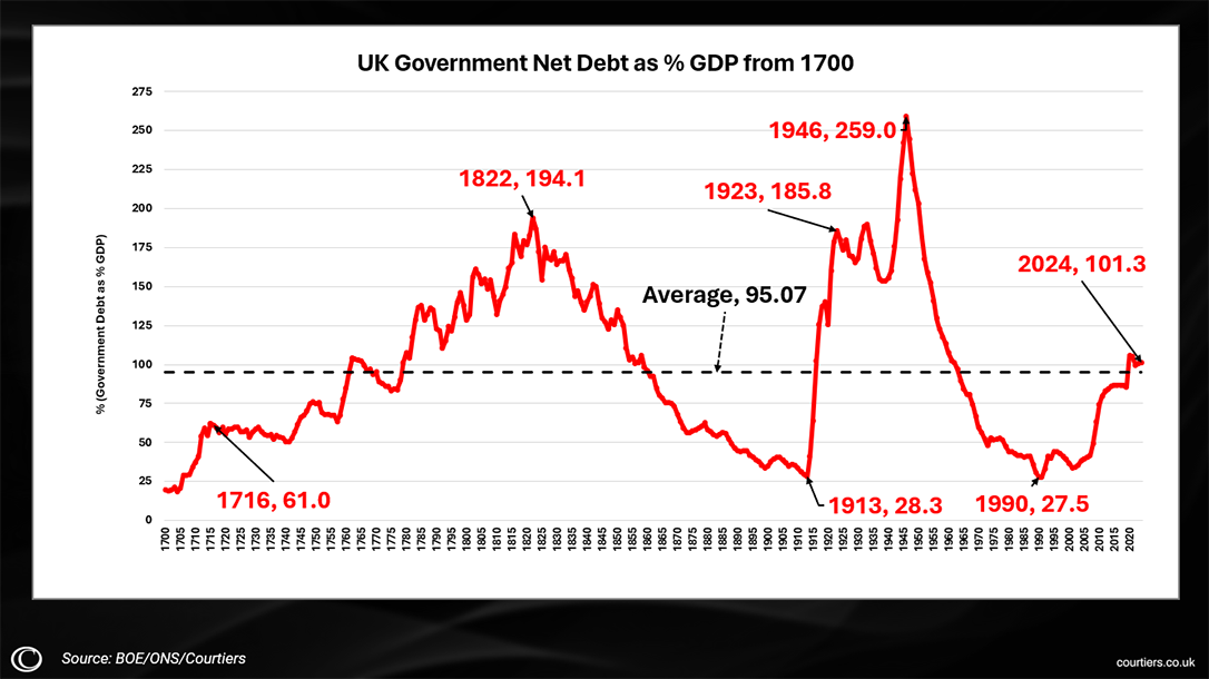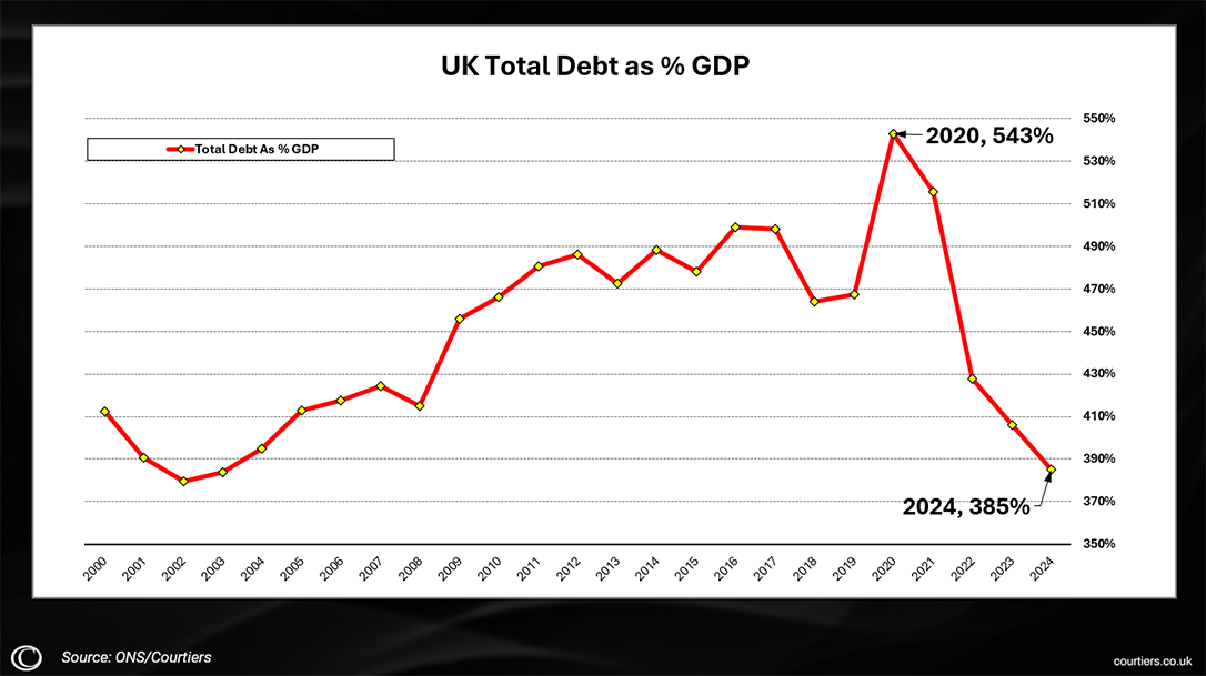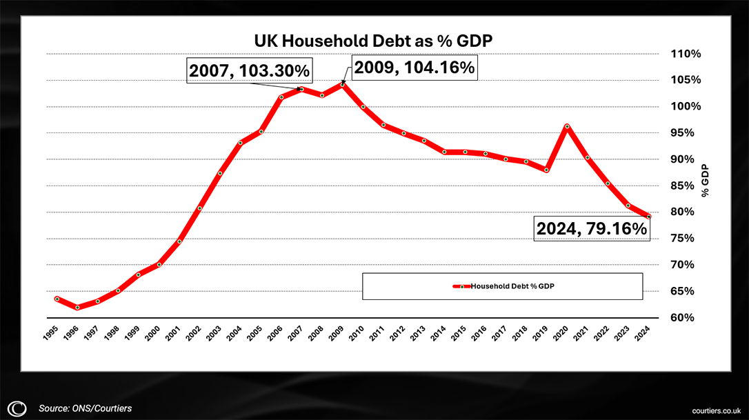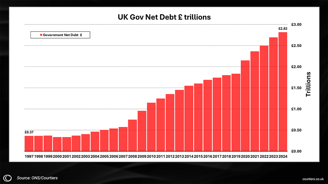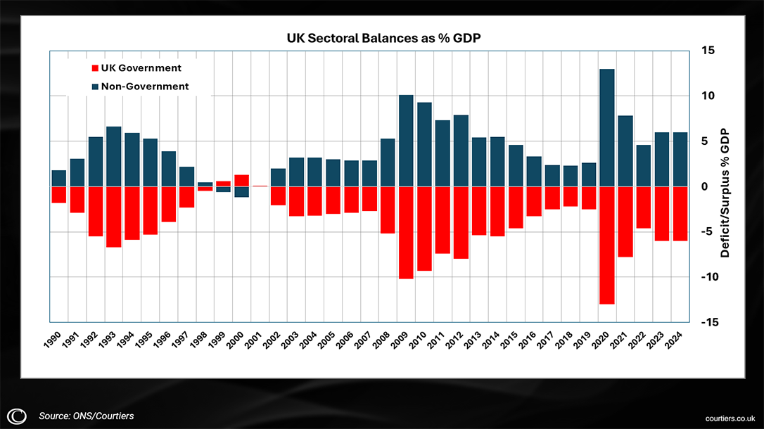 Gary Reynolds has been consistent in his research: Government debt and household savings are two sides of the same coin; one balances the spending of the other. So, the idea of a £22 billion public finances black hole seems ridiculous to him, and with charts illustrating his point, he’s fed up of the excuse. That was the main theme to his talk at the Courtiers 2025 Client Seminars.