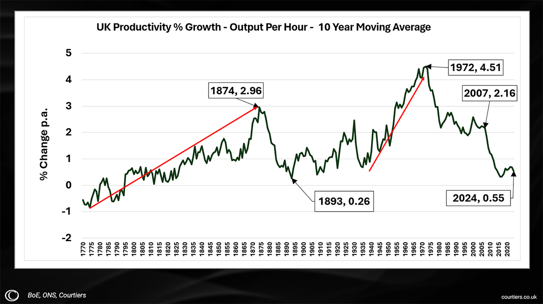 What doesn’t help is when Government depresses people by saying there is a black hole and worrying people to save their money. Take heart; productivity will change, and if history is anything to fall back on, it will happen.