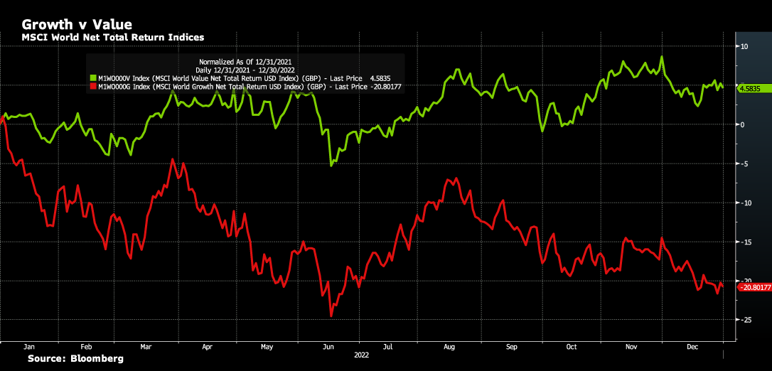 But if you go back to 2022, Value outperforms in difficult markets, as the chart below shows.